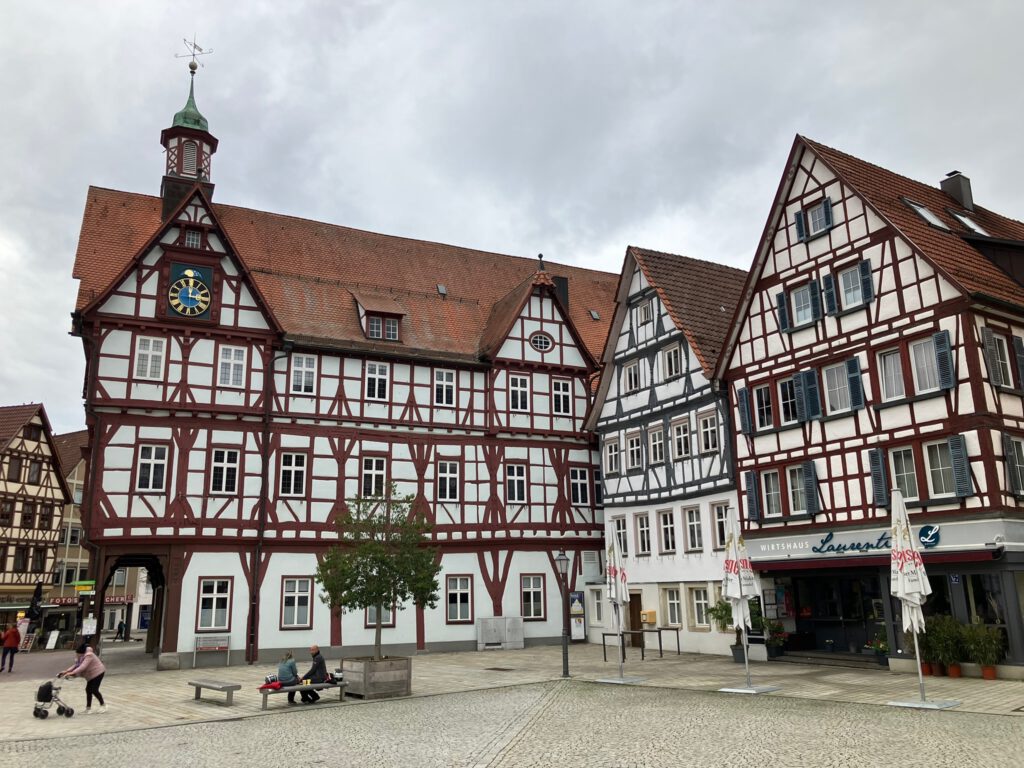 Anschließend haben wir noch Zeit zu einem kleinen Abstecher in die Innenstadt von Bad Urach bevor der angekündigte Regen kommt. Zu Fuß etwa zwei Kilometer aber es lohnt sich. Wir sind überrascht von den hübschen Fachwerkhäusern und auch dem legendären Schäferlauf von Bad Urach, bei dem auch heute noch Schäfertöchter und -söhne um die Schäferkrone kämpfen. Der Lauf findet alle zwei Jahre statt und zwar zu ungeraden Zahlen.