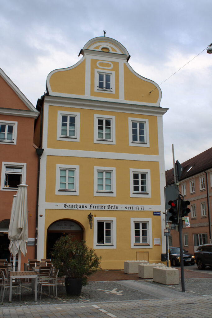 Wir kamen gegen 16:00 Uhr an und konnten auf dem großen Festplatz an der Isar und nahe der Innenstadt über Nacht stehen bleiben. Landshut war mir bisher völlig unbekannt, Rainer hat dort einen Teil seines Wehrdienstes abgeleistet. Von der Kaserne ist nicht mehr viel zu sehen. Wir haben die auffälligen Giebelhäuser der Stadt besichtigt und uns ein bayrisches Brot gekauft. Anschließend gab’s noch gebackene Milzwurst beim Firmerbräu, war gut aber nur gebraten ohne Panade wäre es wahrscheinlich noch besser gewesen.
