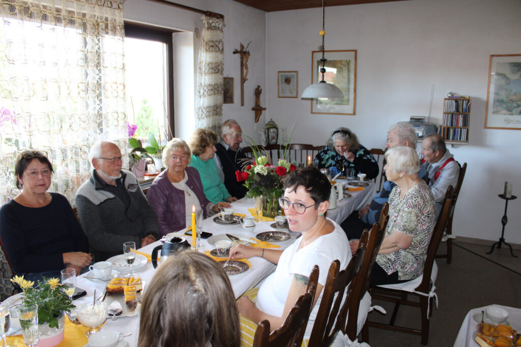 Bereits auf dem Platz treffen wir eine Tante von Rainer. Rainers Mutter stammt aus der Gegend und ist dort bei einer ihrer Schwestern zum 83. Geburtstag in Poppenhausen eingeladen. Sonst sind noch zwei weitere Tanten und ein Onkel von Rainer dort zu Besuch und auch noch zwei Cousins mit jeweiligem Nachwuchs. Also eine relativ große Runde zu der wir auch spontan eingeladen wurden nachdem wir unseren Zwischenstopp in Sommerach angekündigt hatten.