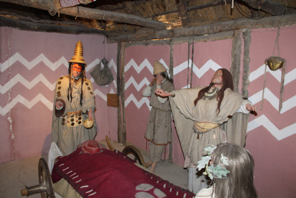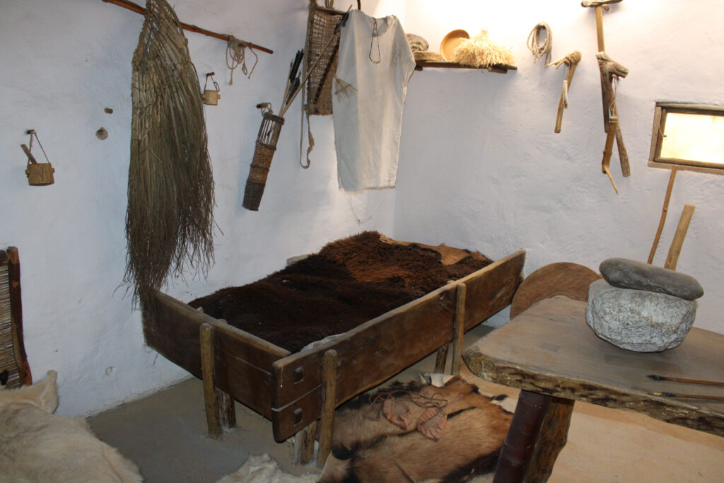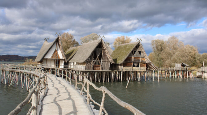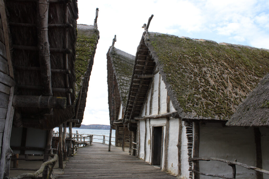 Das Museum ist aber geöffnet und die Pfahlbauten sind alle zugänglich. Es sind einige Guides unterwegs, die das Leben der Bronzezeit den Besuchern näher bringen sollen. Die Bauten sind sehr schön rekonstruiert und mit vielen Beispielen über die mögliche Ausstattung der Gebäude versehen. Eine Videoshow bringt uns die Geschichte der Entdeckung der Ansiedlung und die Arbeiten der Archäologen näher. Interessant ist, dass ein Teil der rekonstruierten Häuser auf Funde im Federsee zurückzuführen sind. Das Museum ist aufwändig gestaltet und die Höhe des Eintrittspreises berechtigt.